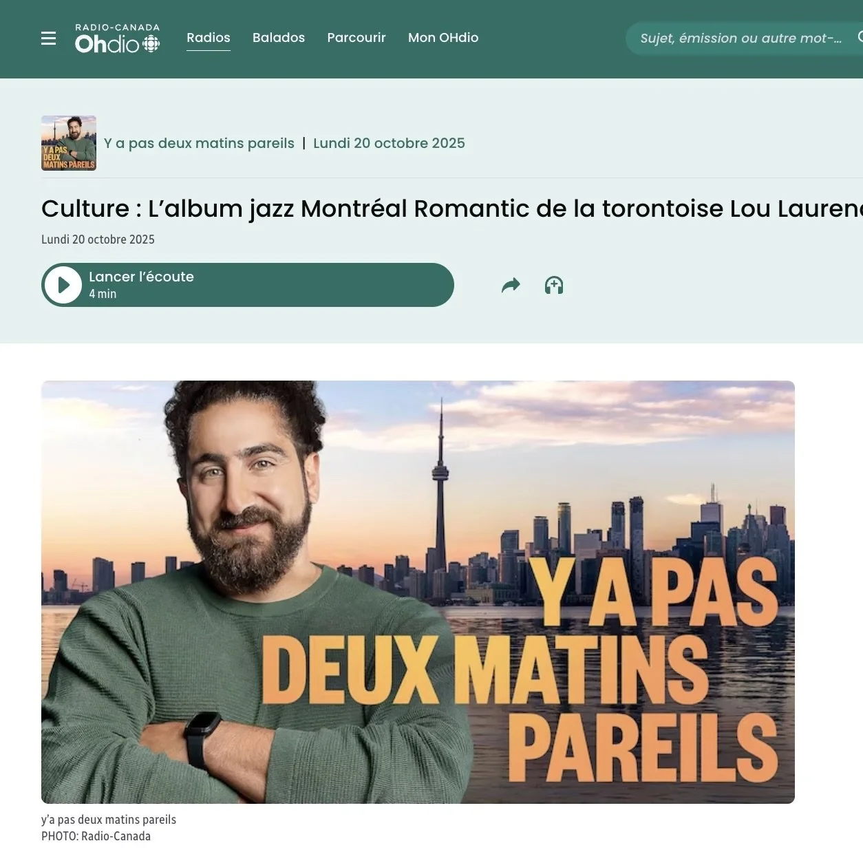 « Oui, c’est très, très 5 à 7. Jazz très bien fait de Lou Laurence qui nous offre Montreal Romantic […] J’aime beaucoup son grain de voix »